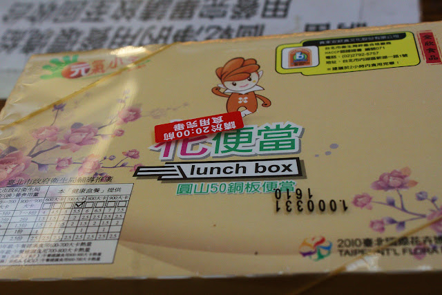 圓山區的銅板便當,量不算多,飯是紫米,但沒有紫米的口感,我覺得是不錯,至於味道沒什麼感覺,因為當時頭痛,只打算趕快吃完…。